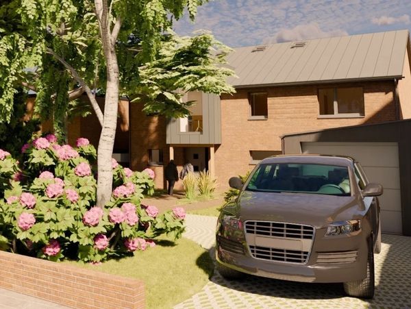 This ’hidden’ plot in central Ealing is being tested for a new three-bedroom private dwelling, designed to meet the Passivhaus standard but aiming to go beyond the classic certification with on-site energy generation via a solar PV roof array. Large overhanging eaves and a veranda on the south garden-facing façade will help combat a future warming London microclimate by limiting overheating risk. After evaluating the existing chalet bungalow on plot as an EnerPHit retrofit scheme, the decision was made on cost grounds to pursue a demolish and replace option instead. A full planning application was submitted in July - a decison is still awaited.