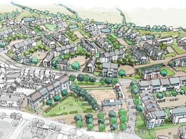Bude - a pedestrian-friendly masterplan for a new housing development in the Broadclose Farm area on the edge of town. The scheme went on to win the Richard Fielden Housing Design Award in 2007.