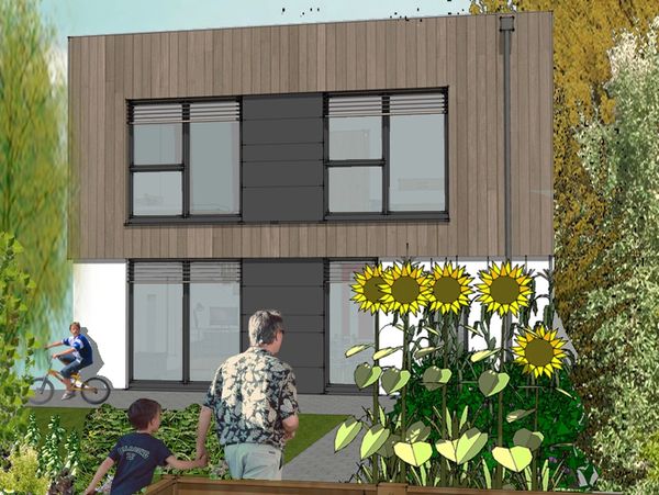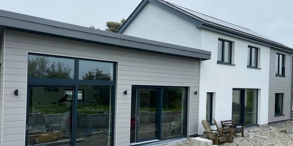 Trethurgy, St Austell - a 4-bedroom family home designed to the AECB Low Energy Standard in a contemporary Cornish vernacular with super insulation and triple-glazed fenestartion, airtight construction, heat recovery ventilation, solar PV and air-source heat pump technology.